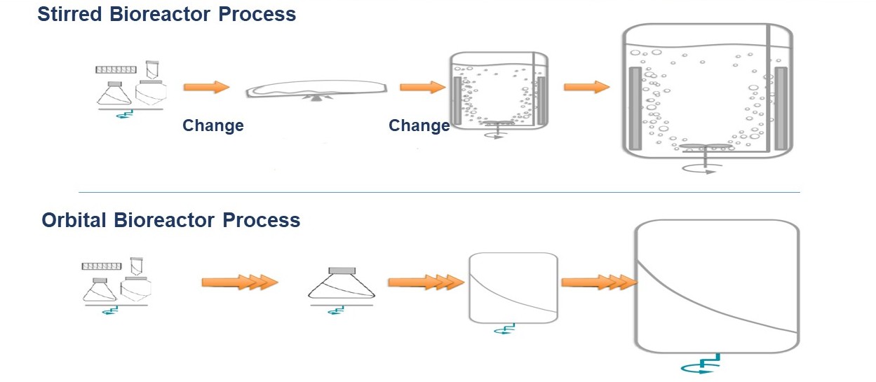搅拌生物反应器与环轨生物反应器的流体动力学差异